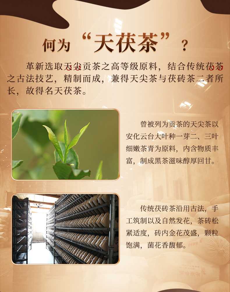 湖南安化黑茶白沙溪金花獲磚茶手工茶特產禮品茶三年陳天獲茶1kg