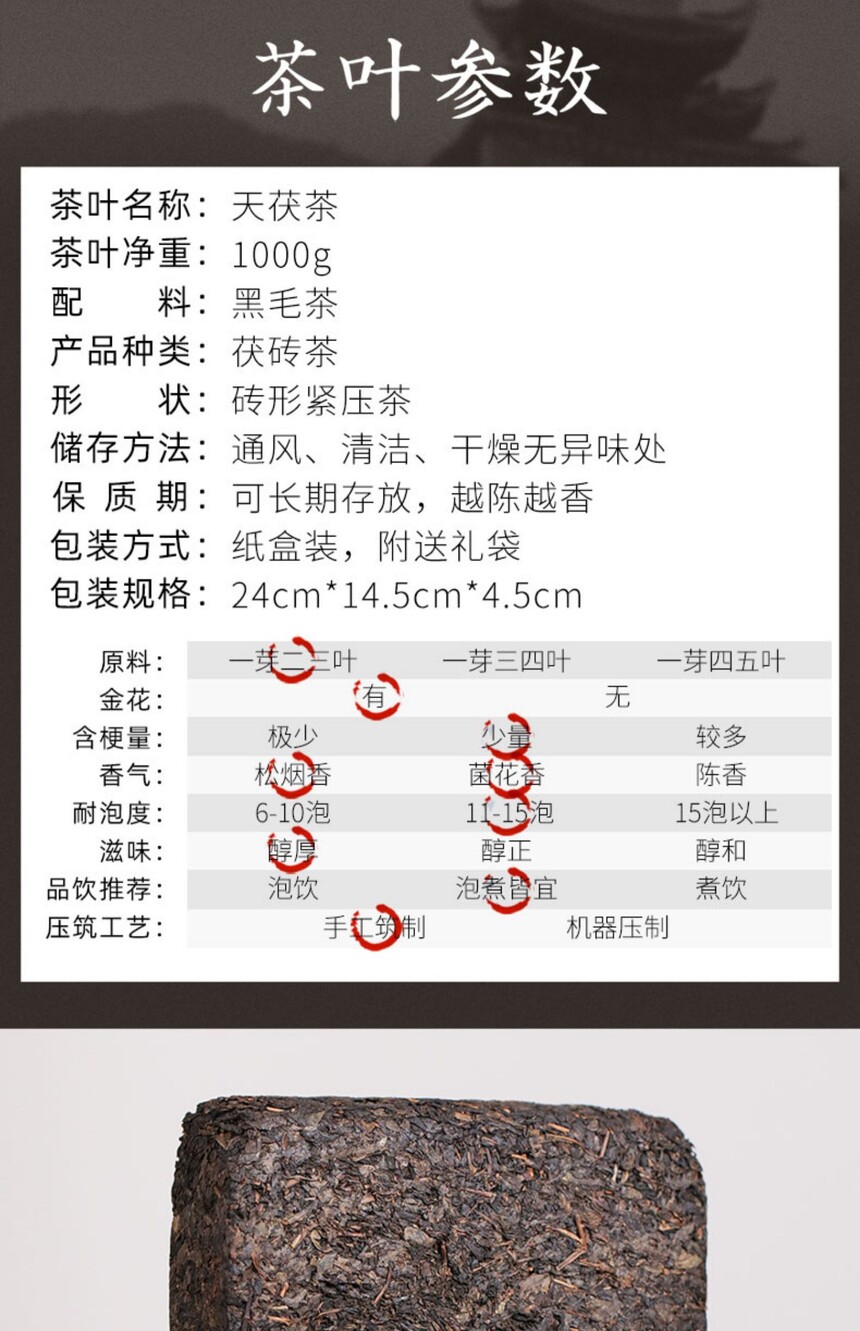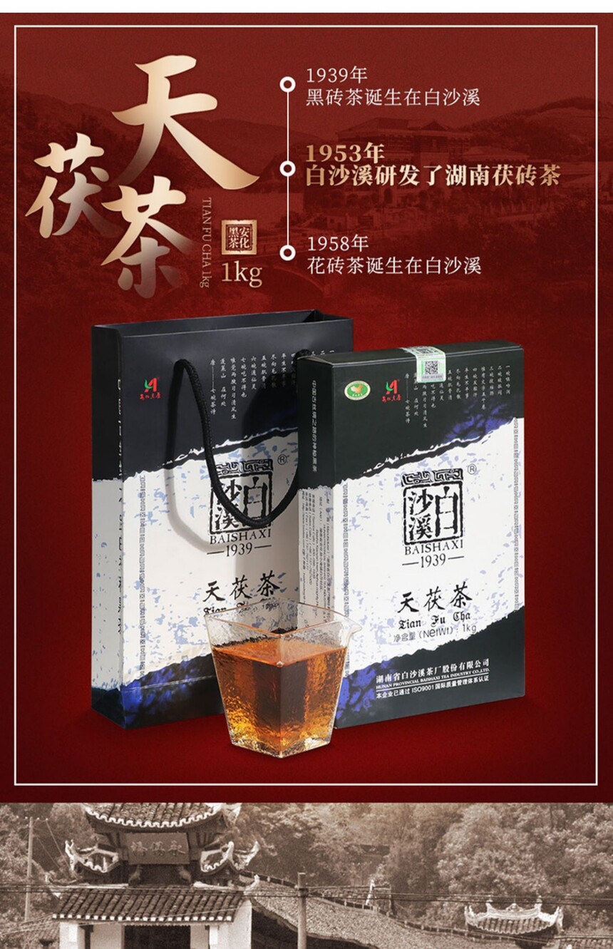湖南安化黑茶正宗白沙溪金花獲磚茶茶禮茶葉天獲茶1kg