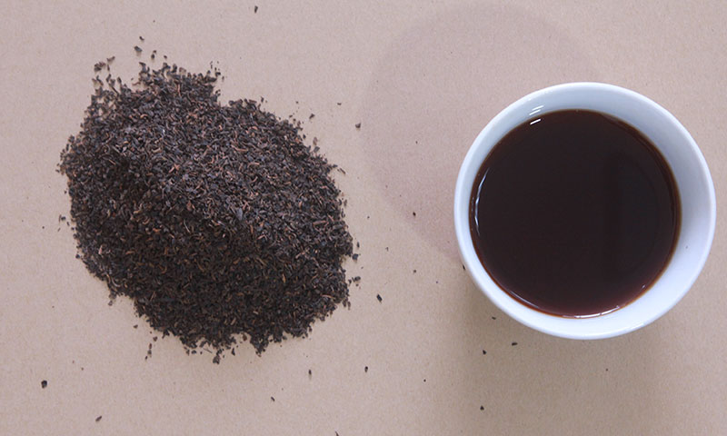 普洱碎茶:茶葉重實,稍顯芽頭,湯色紅濃。
