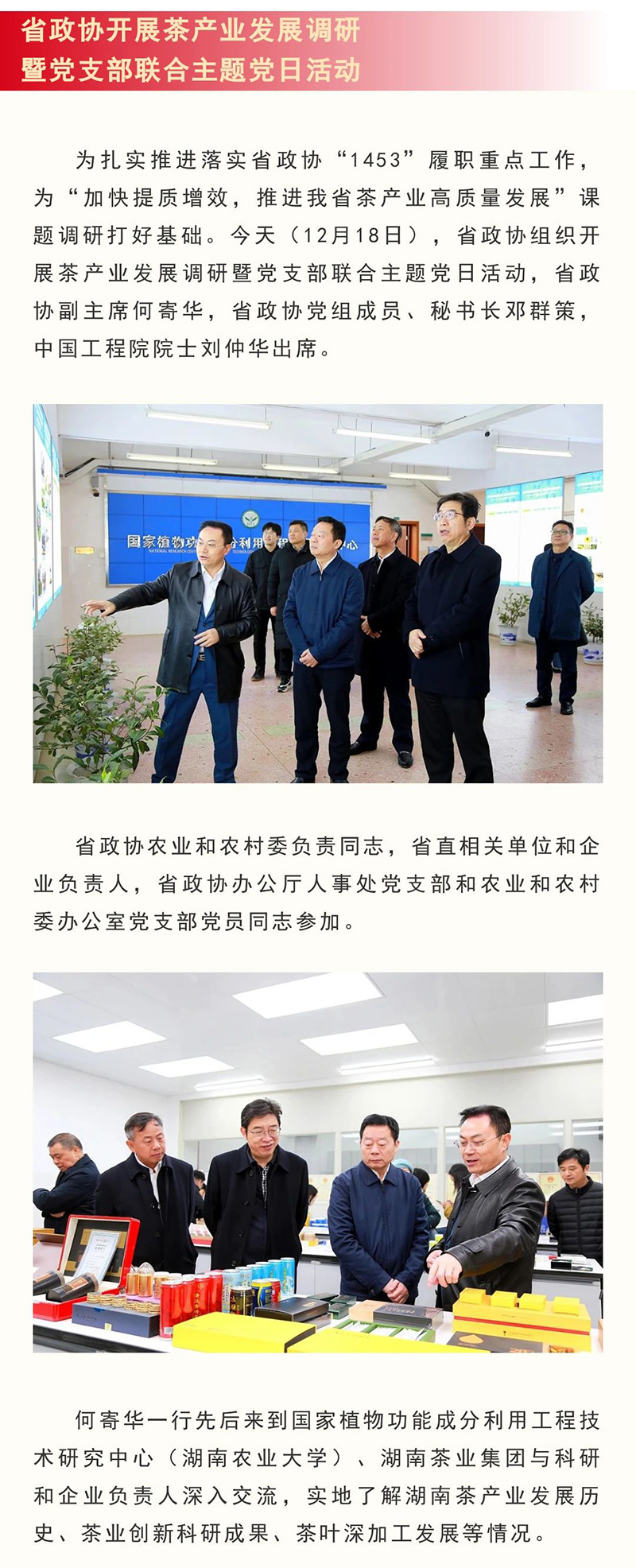省政協開展茶產業發展調研暨黨支部聯合主題黨日活動