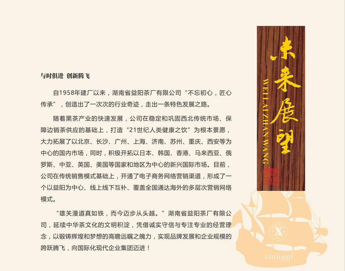 13、2013年,益陽茶廠有限公司”湘益“品牌由中國茶葉流通協會認定為”中國黑茶品牌“。