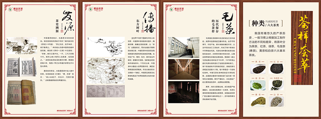 湘益茶博館通過文字、圖片、產品、生產模型及獲獎榮譽的組合布局,全面反映益陽茶廠有限公司60年來的巨大變化與偉大成就,體現益陽茶廠有限公司在湖南黑茶歷史進程中的重要地位和作用;同時,也為湖南黑茶的發展歷史正本清源。